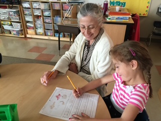 ⼀つ、お伝えしておきたいことは、先⽣のアシスタントが幼稚園の各クラスにいます。 上記の⼥性はグランマと呼ばれるのには若いのですが、⽣徒達はグランマと呼んでいた アシスタントです。担任の先⽣が、カウンセラーにある⽣徒についての相談に⾏く、あ るいは校⻑に話があるときなど、教室を出て⾏きます。その間、クラスの14⼈の⽣徒 達は、このアシスタントの⼿に任せられます。その他、彼⼥は、コピーを取る、テスト の採点、⽣徒達のしつけなど、⾊々と忙しそうでした。