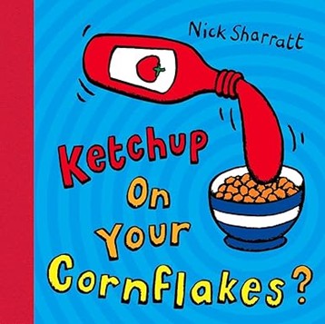 この本は、ページが上ページと下ページに分かれている、仕掛け絵本です。私の読み聞かせの会に ひい孫さんと参加してくださった88歳のおじいちゃんが、「僕はケチャップの本が一番面白かったな」と言ってくださいました。